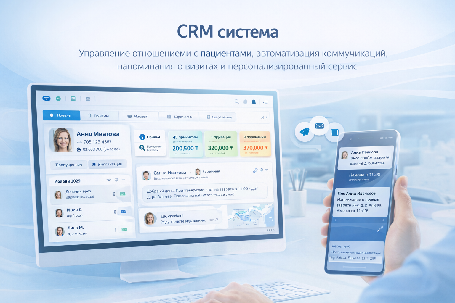 Управление отношениями с пациентами, автоматизация коммуникаций, напоминания о визитах и персонализированный сервис