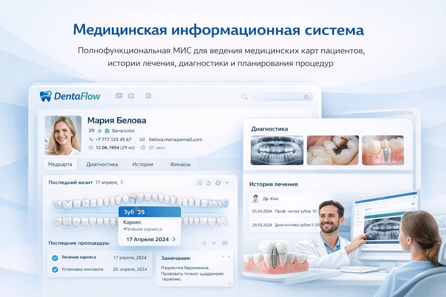 Полнофункциональная МИС для ведения медицинских карт пациентов, истории лечения, диагностики и планирования процедур